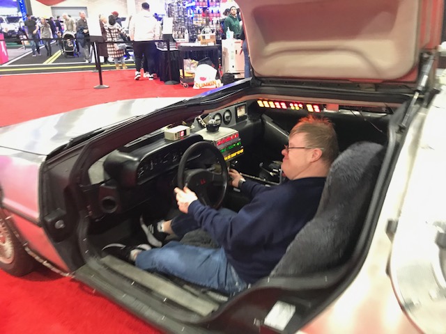 Channeling “Back to the Future” in a vintage DeLorean at the Philly Auto Show.