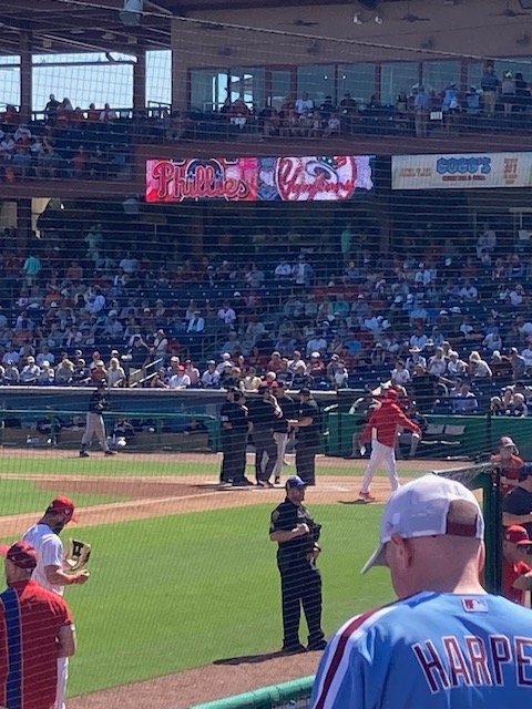 This trip we sent him a picture (above) of Phillies vs. Yankees Spring Training. It got this response: “are you in coldwater (sic) Florida or Philadelphia or not”. “Are you still on the road now or just leaved Florida for home today or still watching the game or coming back home on March 3rd.” I tried calling him from the stadium. Lousy cell reception. Later that day, another text: “and are you on the road again to home or visiting Anne and Tom tonight. Are you still in Florida or drive home or not”.” I finally texted him back when we got some internet connection. He replied, “Thanks again about the Phillies game. Let me know I seeing that game Phillies won. Have nice night. Send my heart to Anne and Tom. Let me know (when you) leave on Saturday.” (Last year we had visited our dear friends Anne and Tom on the way home so this was on his mind. )
