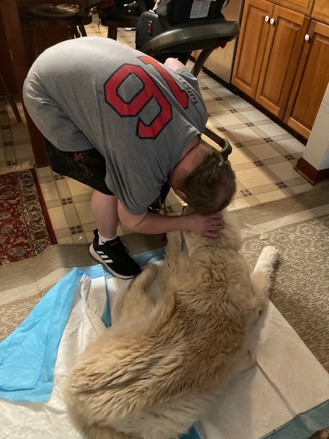 I sent Bryan every picture I could find of the two of them together throughout every stage of those seventeen years. His supports team was alerted and he shared pictures and thoughts with them. Coda was a friend to Bryan who didn’t care that Bryan stutters or has difficulty doing things. That unconditional love of a dog is a priceless gift. Probably one of the most valuable lessons Bryan will ever learn.